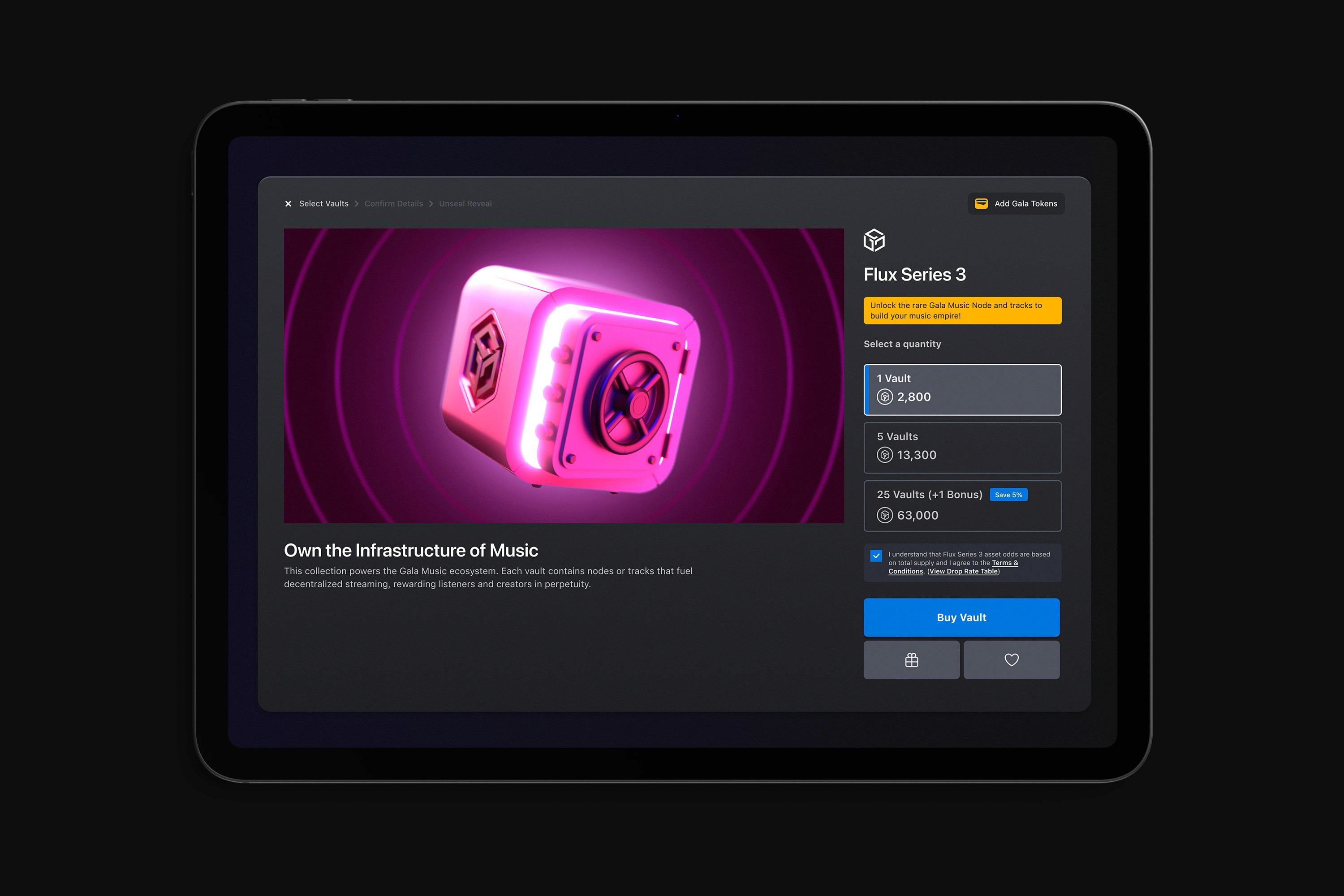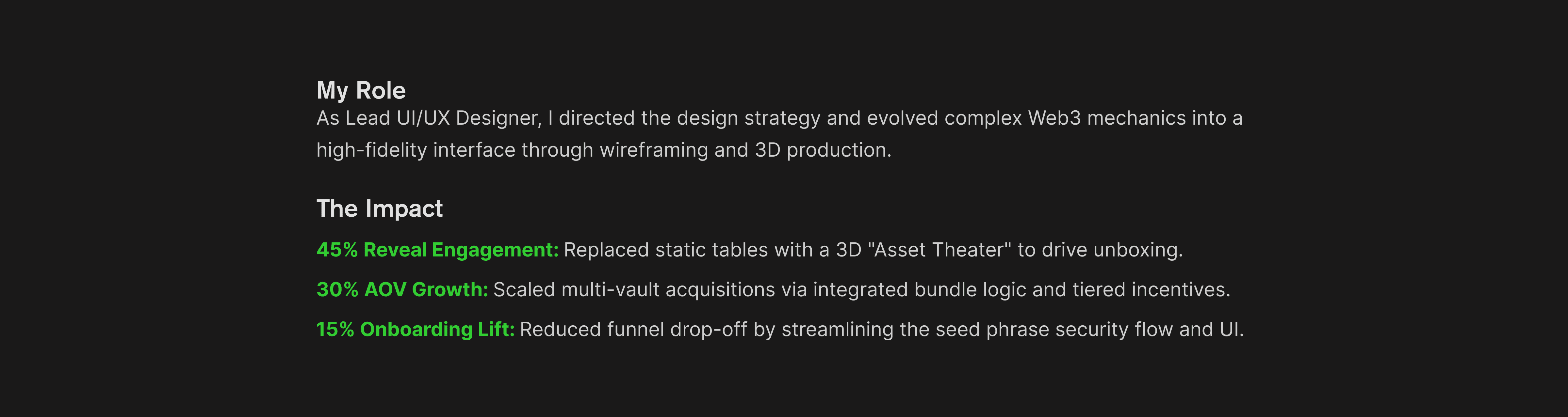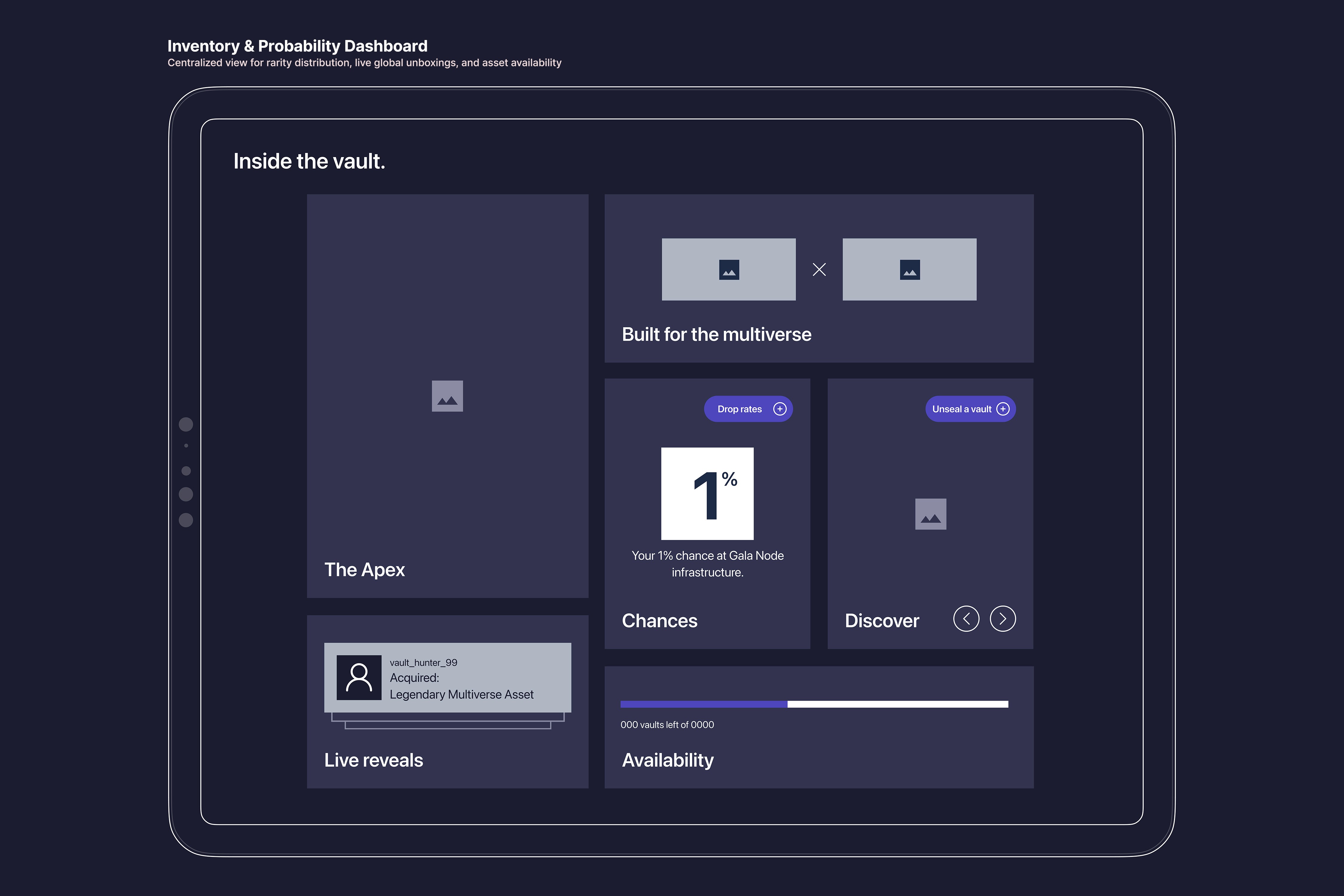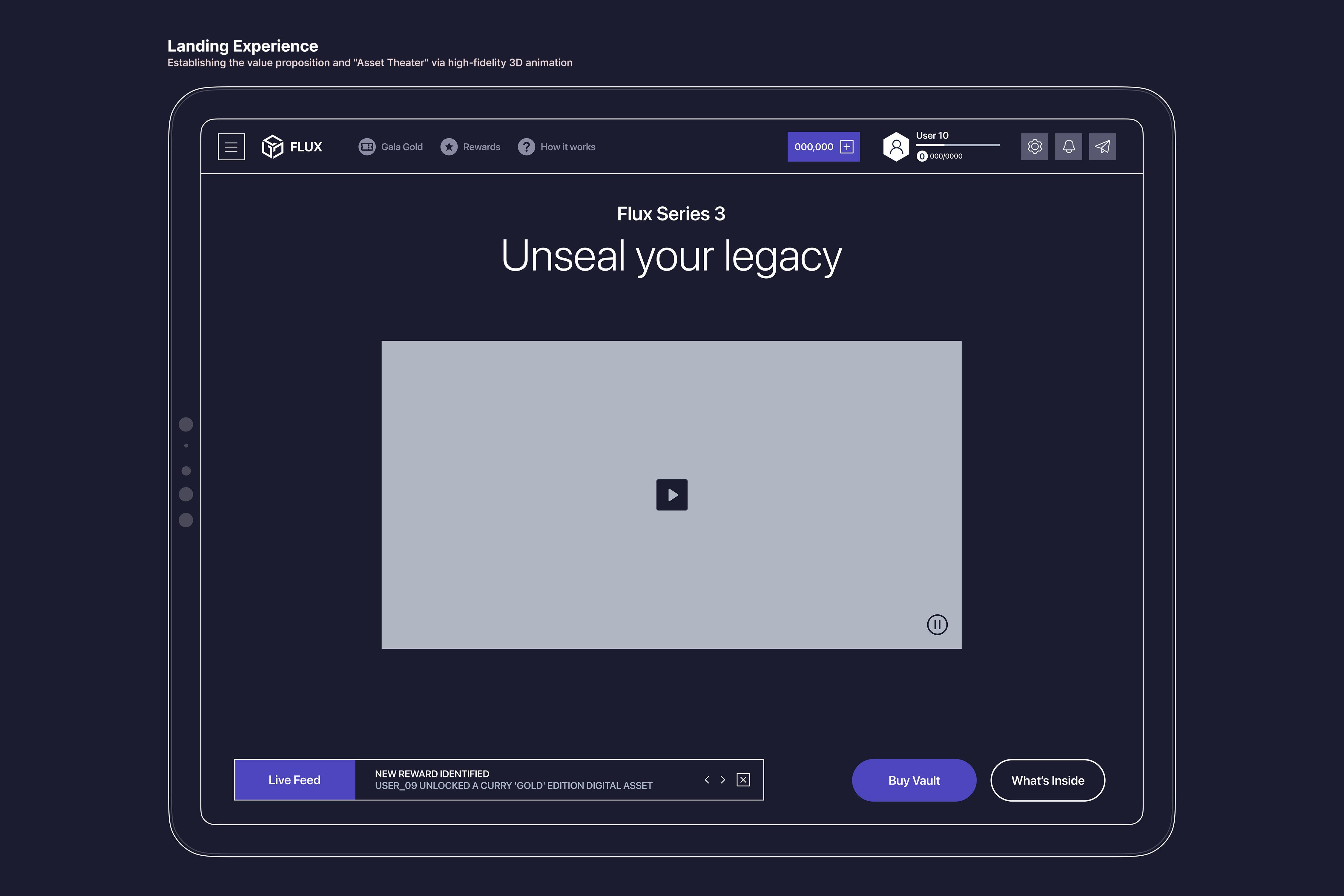 The architectural focus of Gala Flux centers on "The High-Stakes Reveal." By transforming a standard inventory list into a cinematic Asset Theater, I replaced the friction of Web3 transactions with a premium, immersive narrative. This design strategy prioritizes transparency in drop rates and UX-driven security, ensuring that the transition from wallet-binding to unsealing is an intuitive, engaging event. By anchoring the interface in a modular grid system, I built a scalable foundation that balances high-fidelity 3D motion with the rigorous data demands of the blockchain.